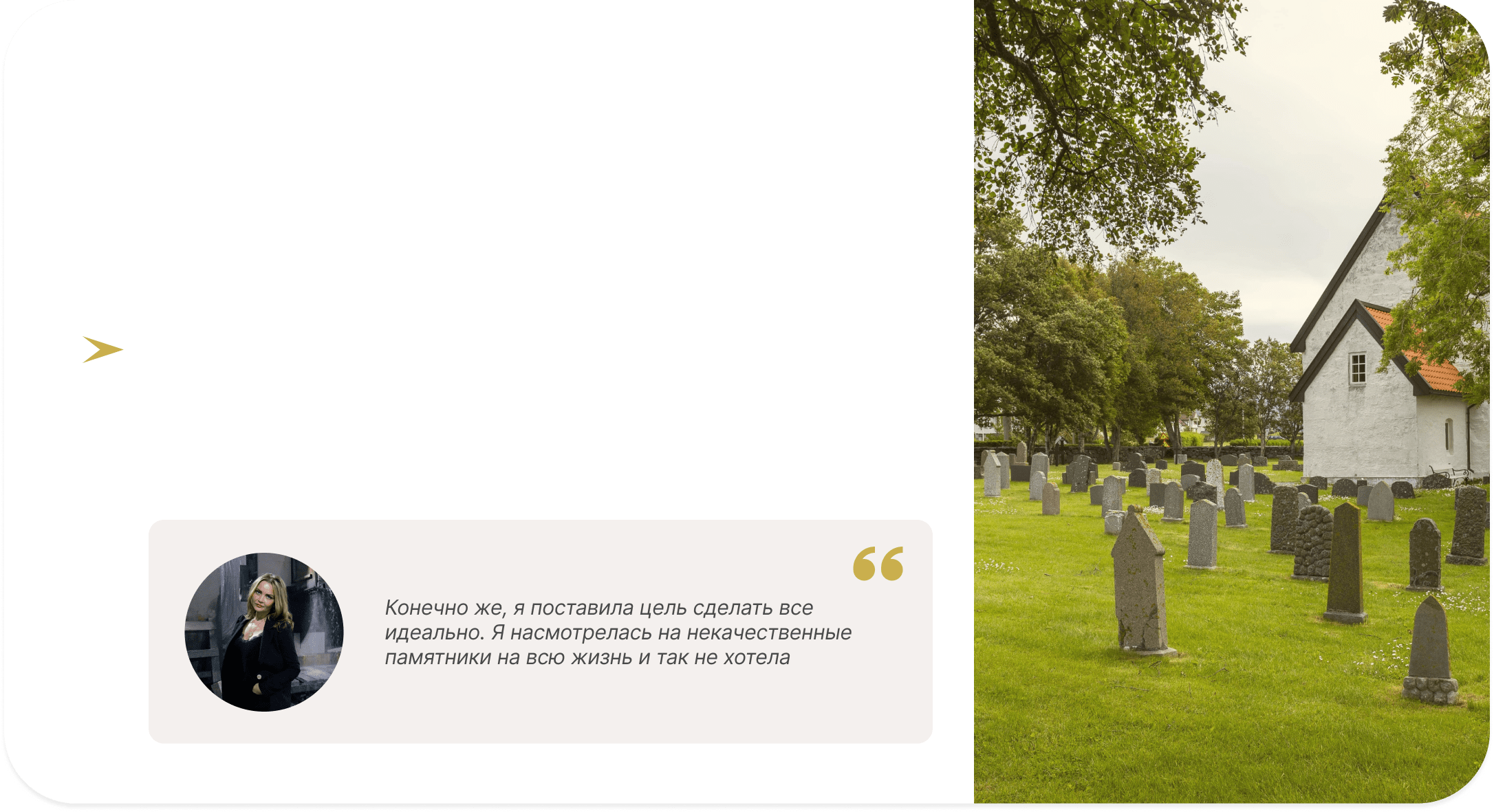 Мы понимаем, как тяжело переживать потерю близких людей, поэтому работаем аккуратно и бережно, привлекая психологов и личных менеджеров для каждого клиента.