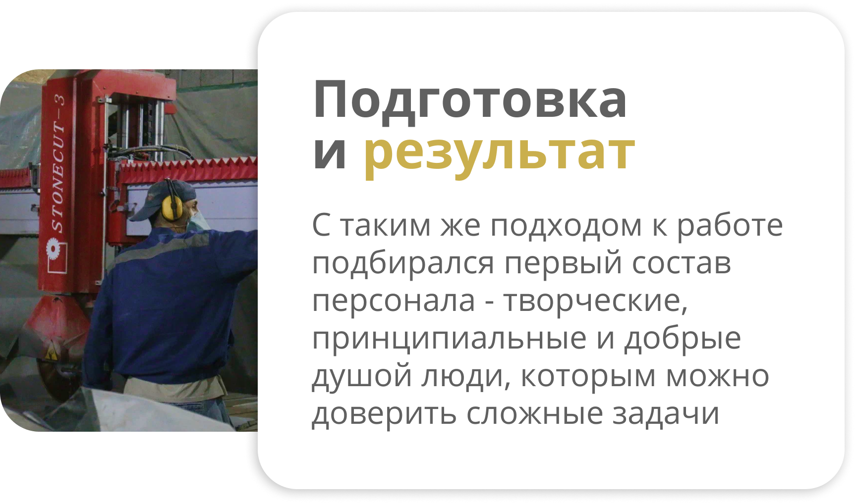 За это время мы пришли к четкому пониманию контроля качества, выстроили доверительные отношения с поставщиками камня с проверенных карьеров и наладили производства таким образом, чтобы выполнять самые сложные задачи без заминок.